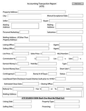Fillable Online Accounting Transaction Report ATR Fax Email Print