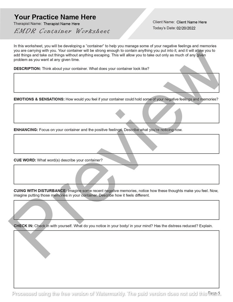 EMDR Container Worksheet Editable / Fillable PDF Template Etsy