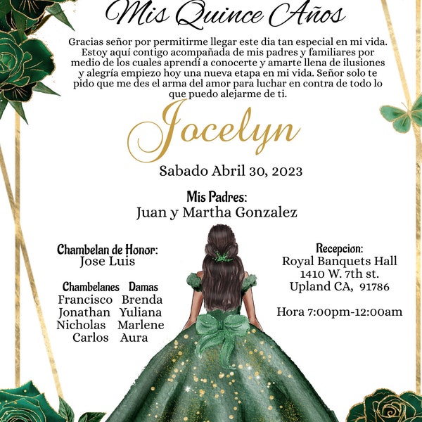 Emerald Green Quinceanera Invitation Template Mis Quince 15 Anos