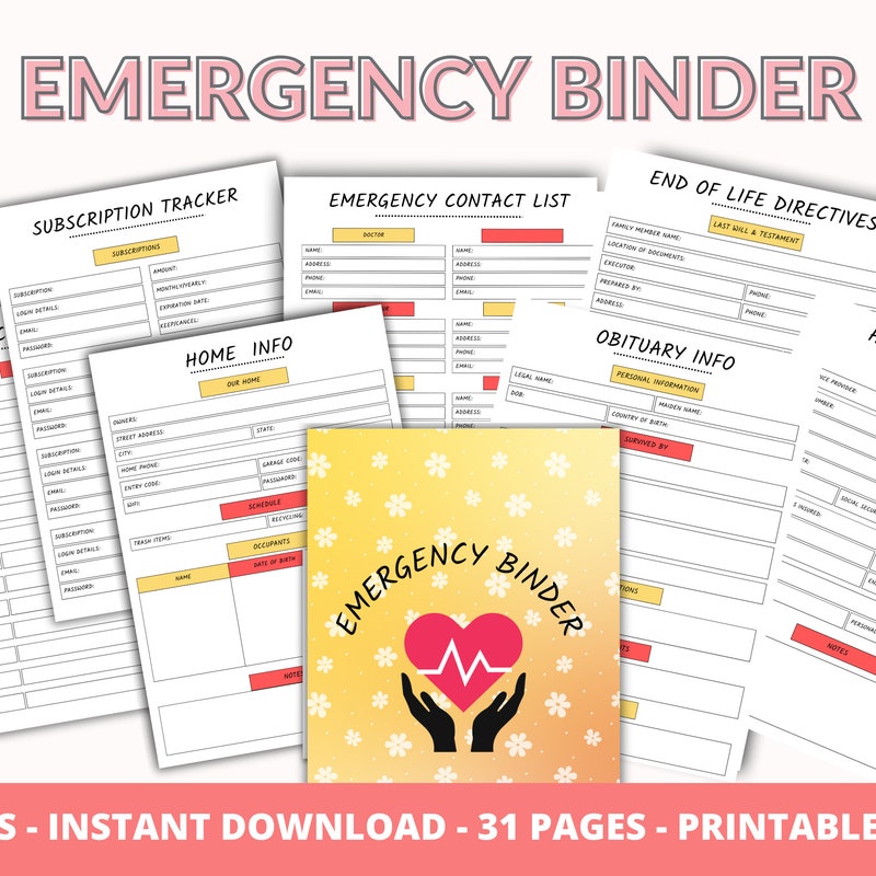 Emergency Binder Printable: Fillable Home Medical Planner (PDF) Etsy