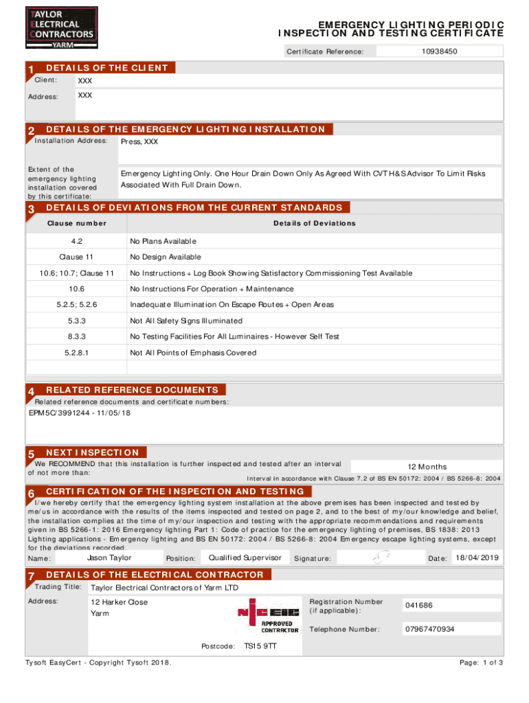 Emergency lighting certificate: Fill out sign online DocHub