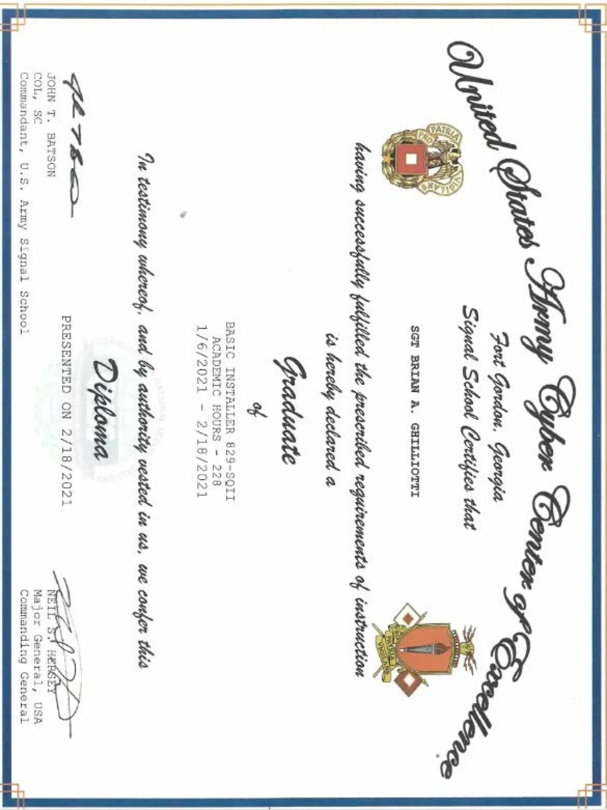 Brian Ghilliotti: USAR: Basic Cable Installer Course Certification PDF