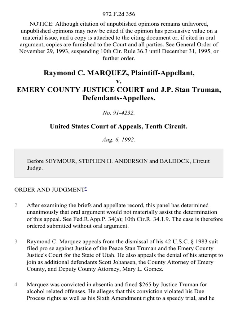 Raymond C Marquez v Emery County Justice Court and J P Stan Truman