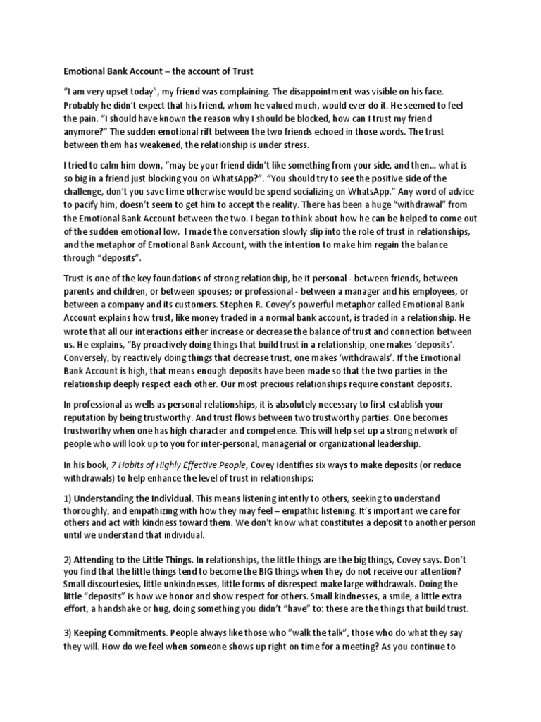 Emotional Bank Account PDF Integrity Behavioural Sciences