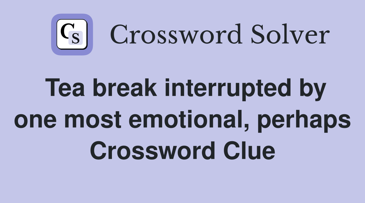 Tea break interrupted by one most emotional perhaps Crossword Clue