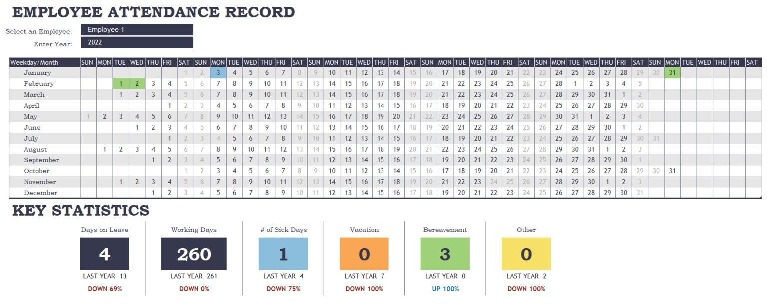 2022 Employee Attendance Template