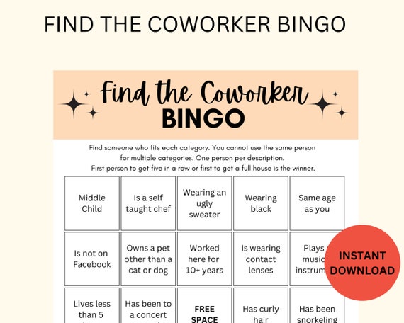 Coworker Bingo Get to Know You Employee Bingo Ice Breaker Bingo