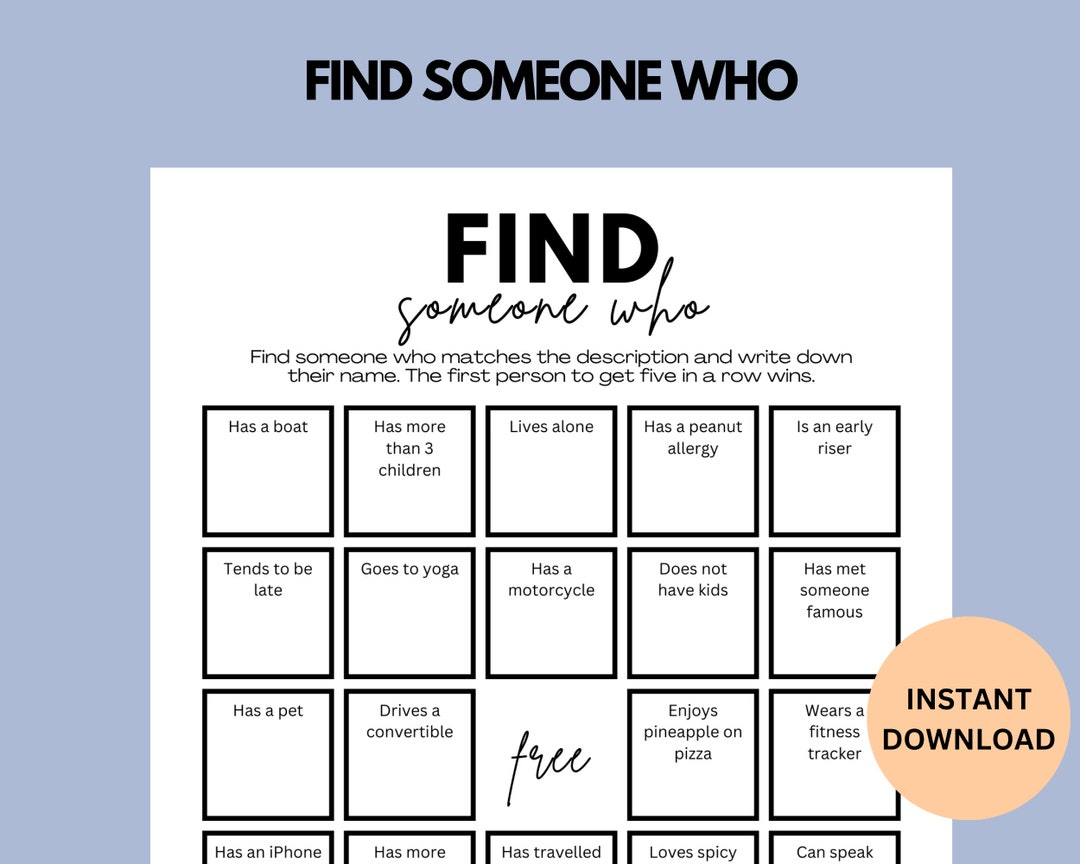 Find the Guest Human Bingo Get to Know You Icebreaker Party Games