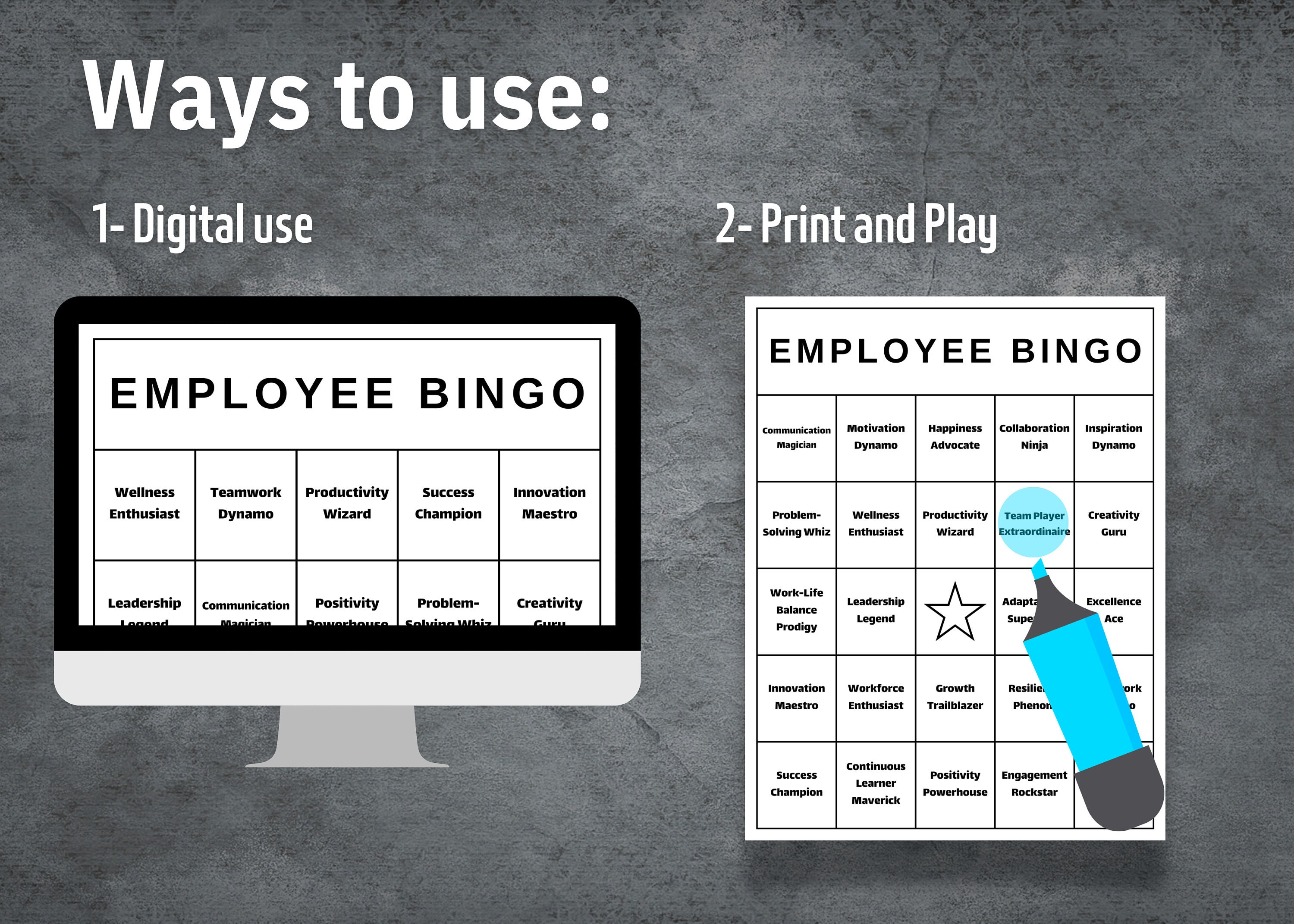 Employee Bingo • Workplace Get to know You Game • Employee Work Game