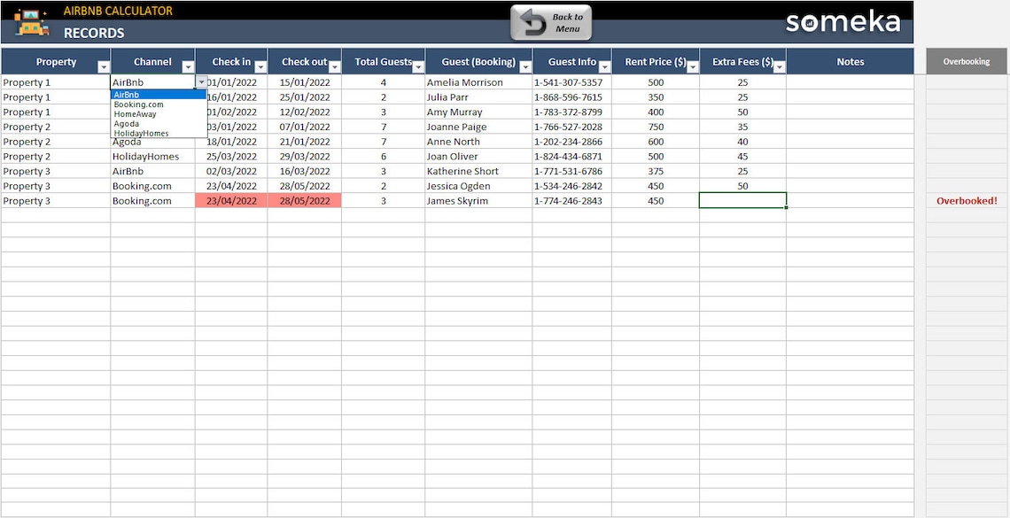 Airbnb Calculator Excel Template Property Management Tool for Landlords