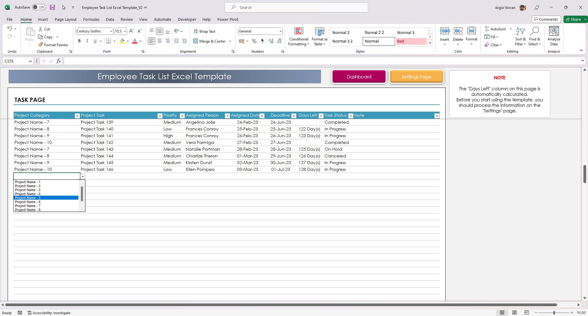 Employee Task List Excel Template Employee Task Tracker Etsy UK