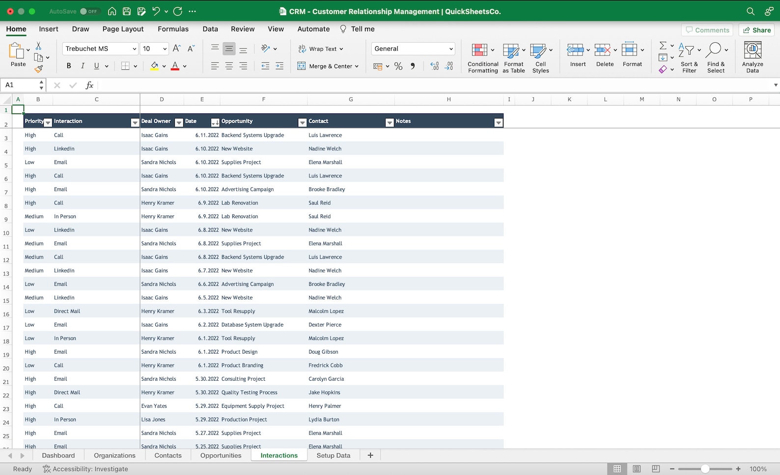 CRM Excel Template Client Tracker Spreadsheet Customer Relationship