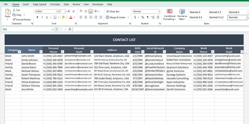 Contact List Excel Template Contact List Sheet Telephone Contact List