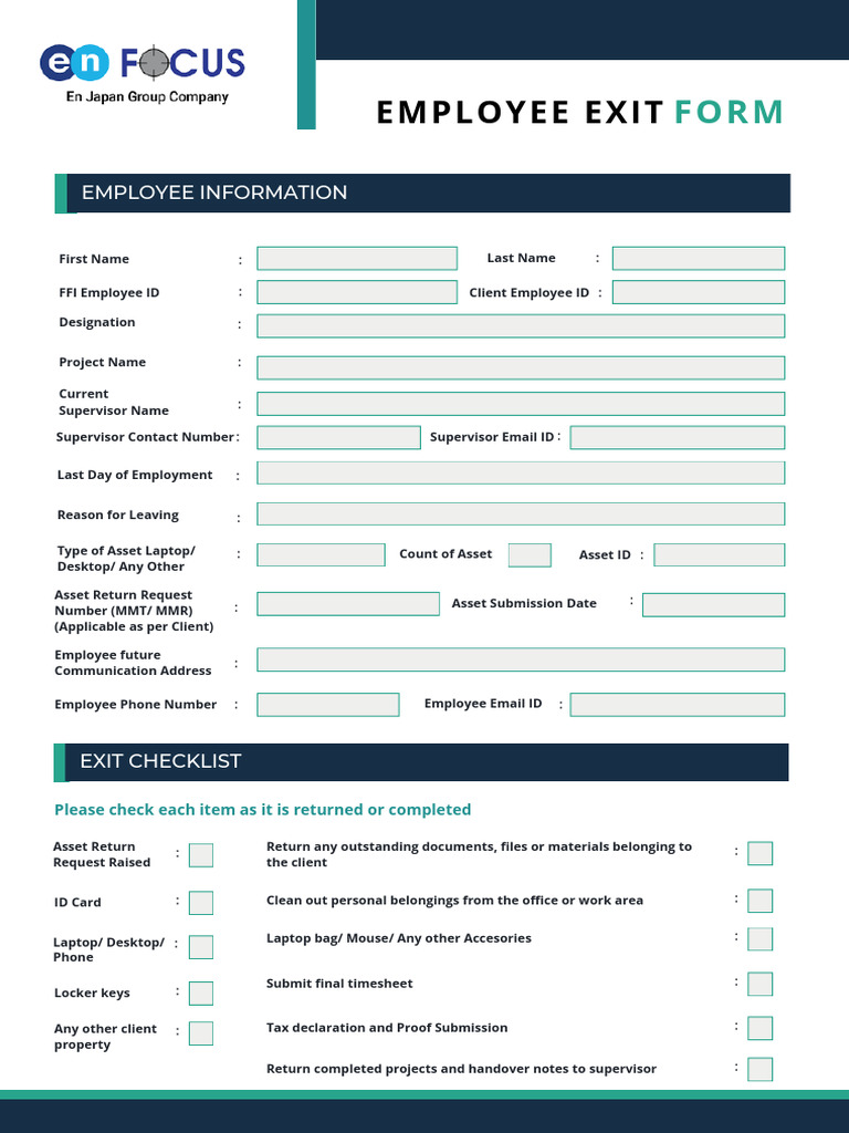 Employee Exit Form FFI PDF Cyberspace Computing
