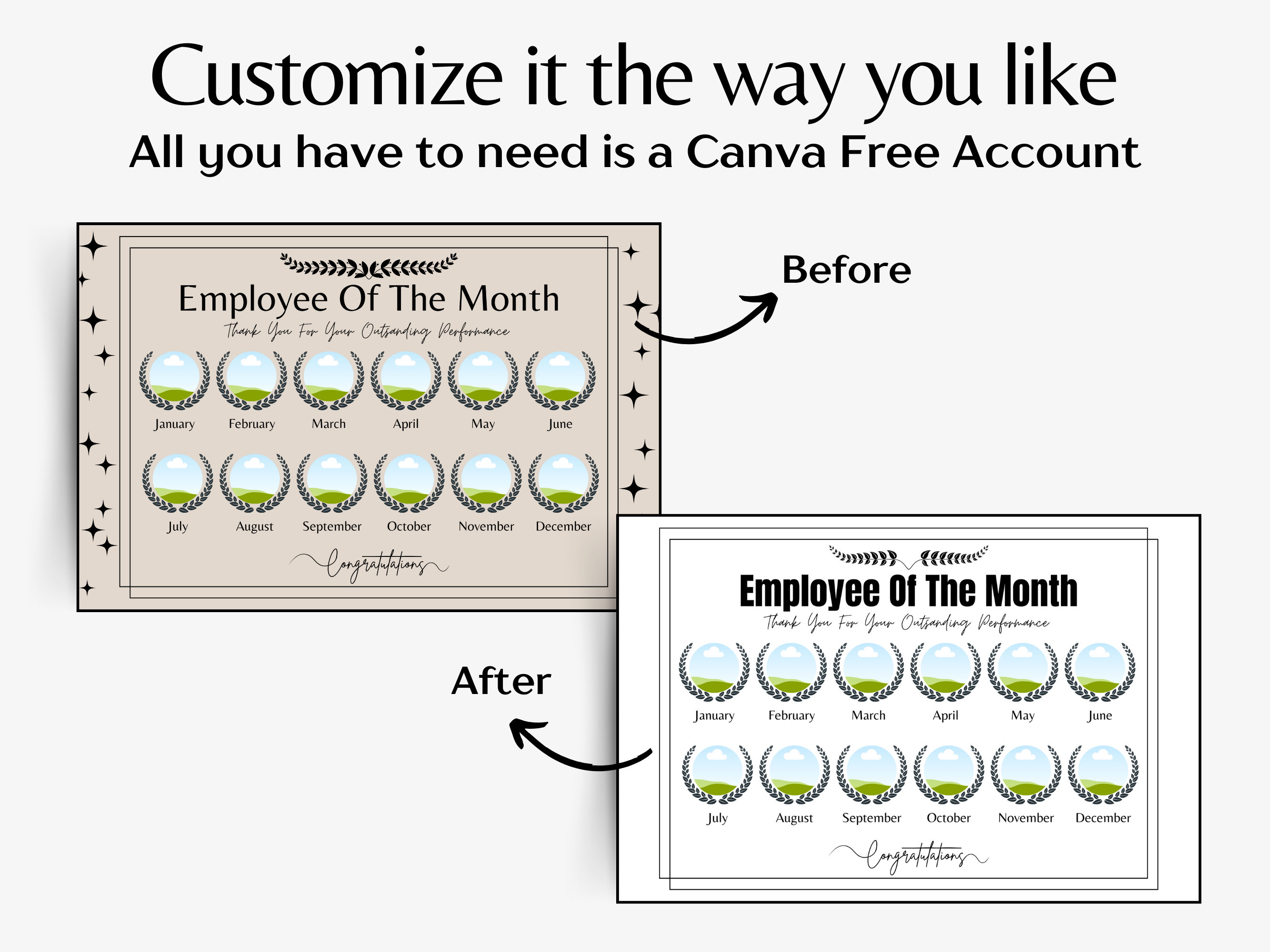 Employee of the Month Editable Template Office Certificate Employee