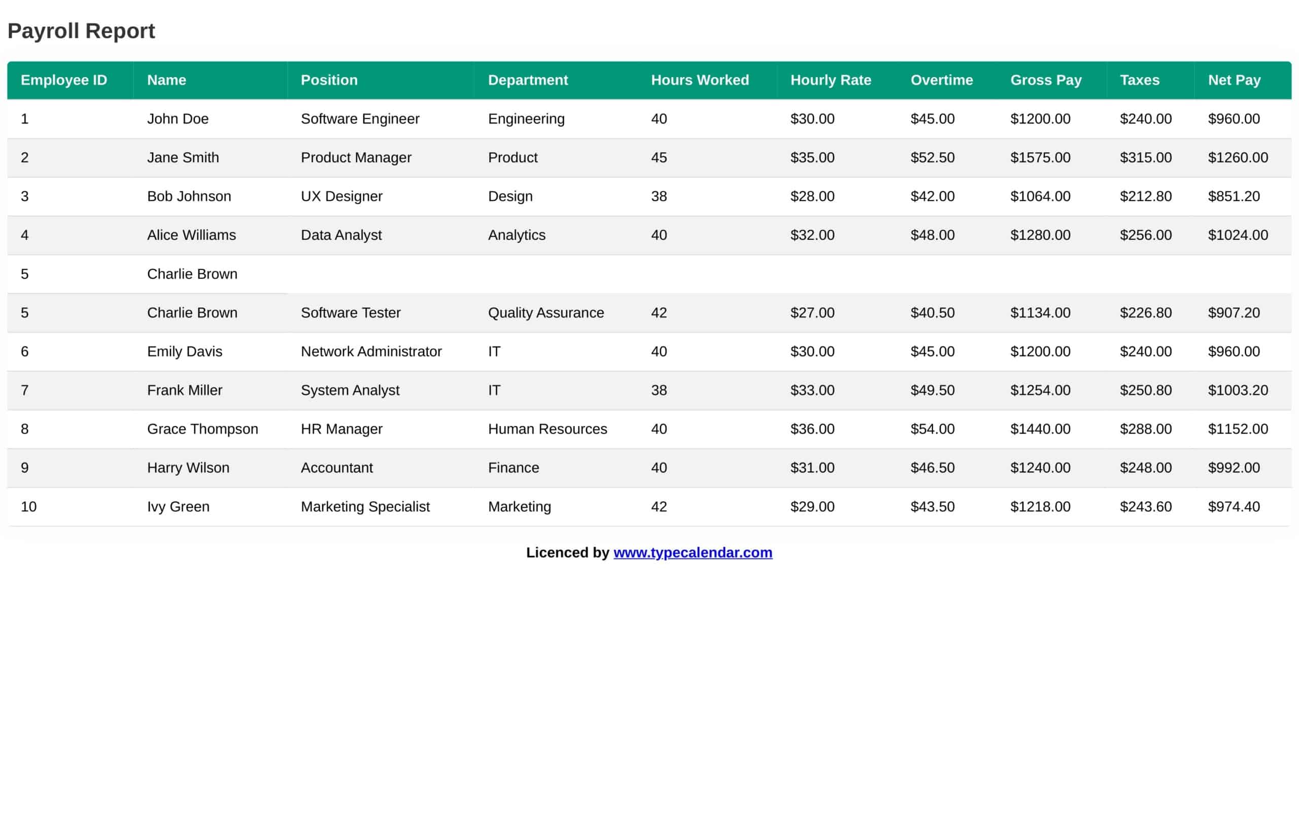 Employee Payroll Report Template Teamdeck io Resource Planning Software