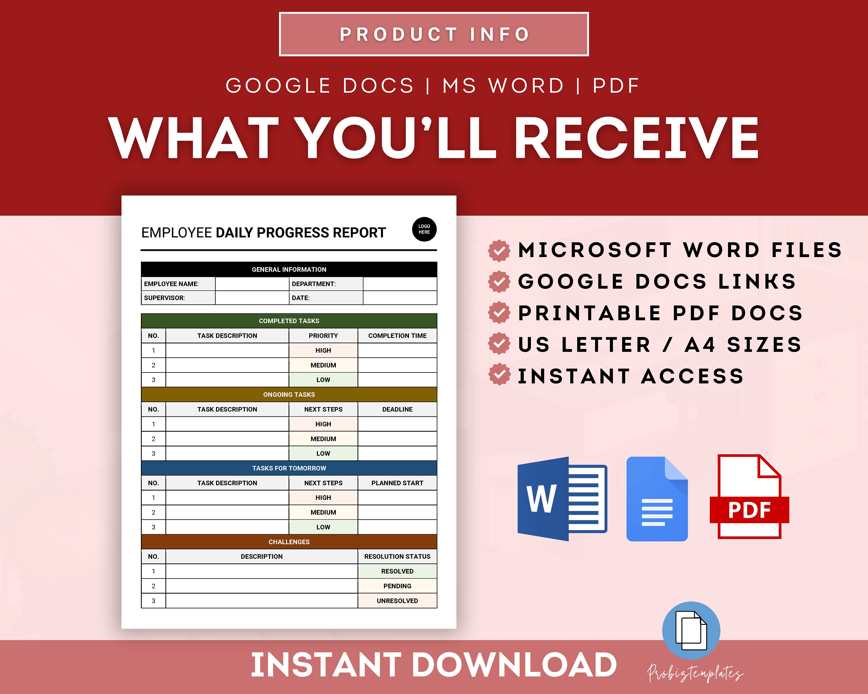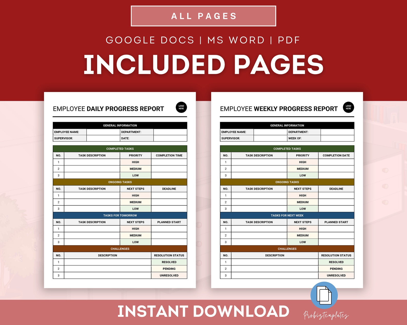 Employee Daily Weekly Report Template ProBizTemplates