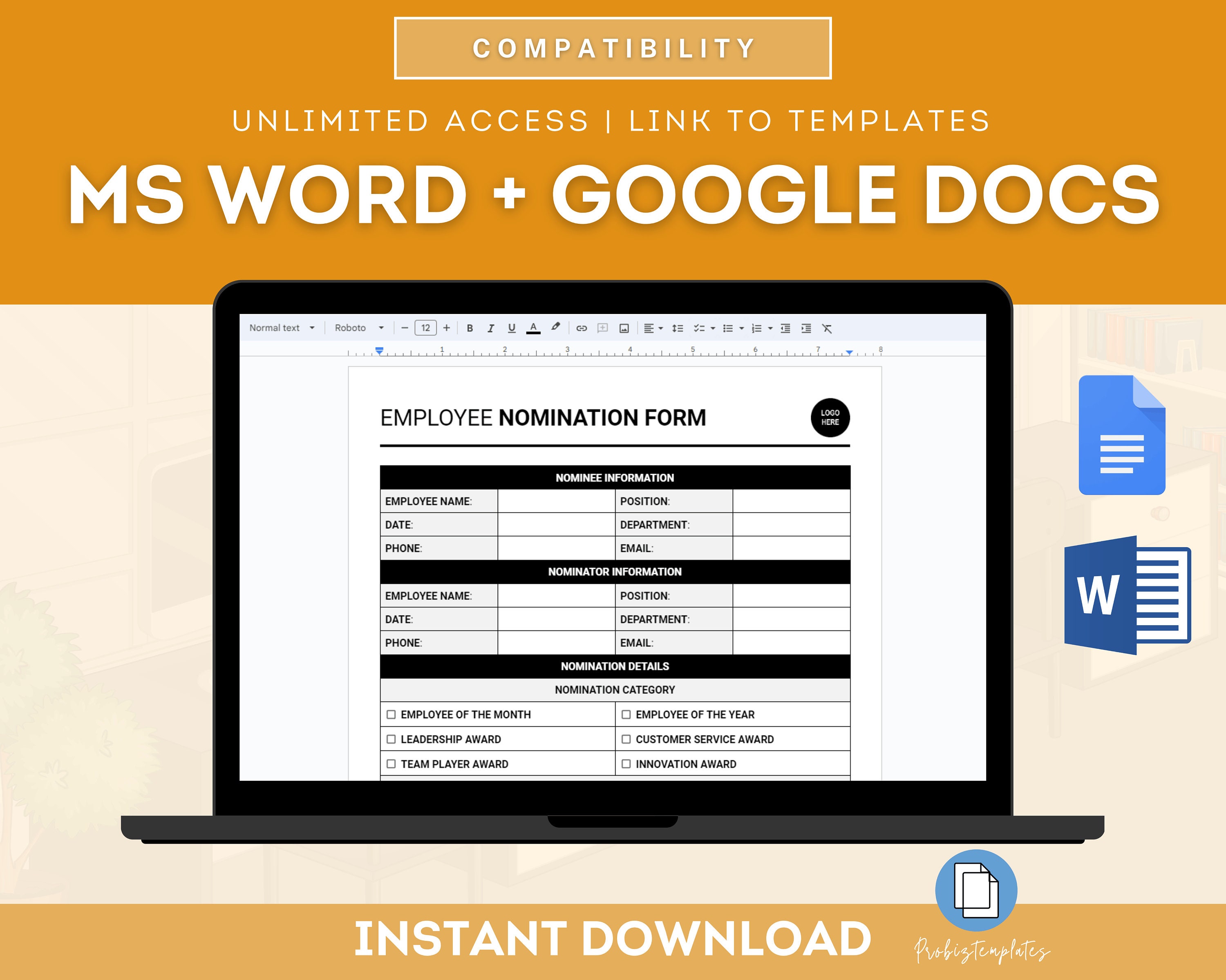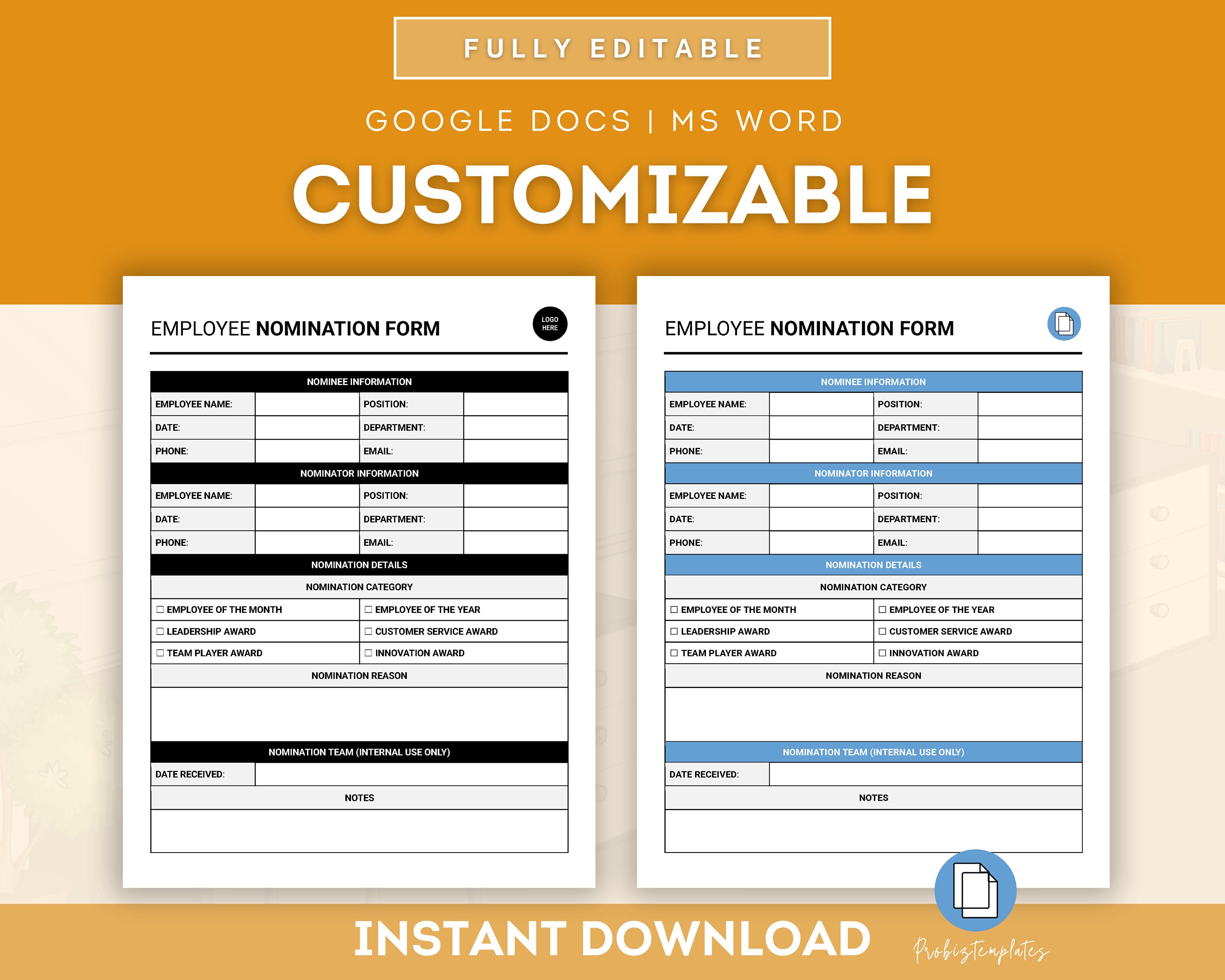 Employee Award Nomination Form HR Template in PDF Word Google Docs
