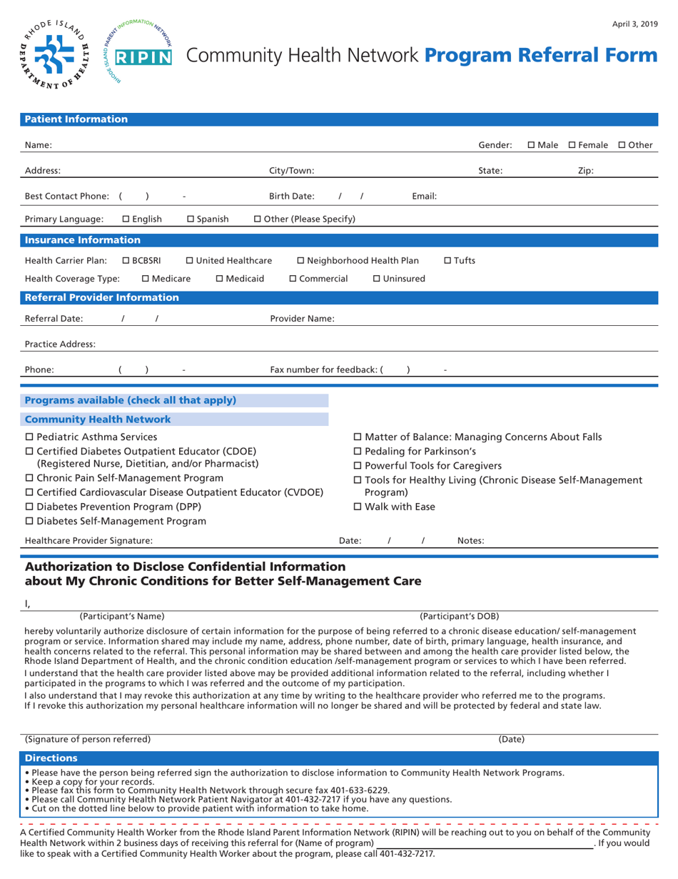 Rhode Island Program Referral Form Fill Out Sign Online and Download