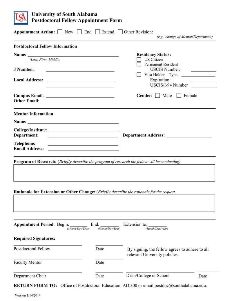 University of South Alabama Postdoctoral Fellow Appointment Form Fill