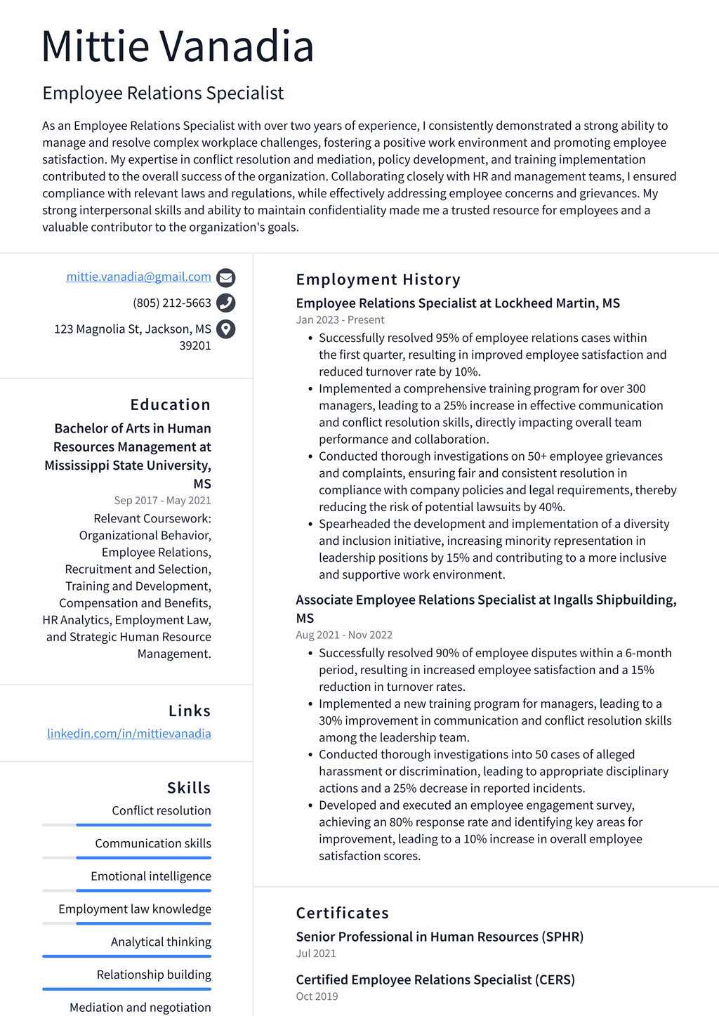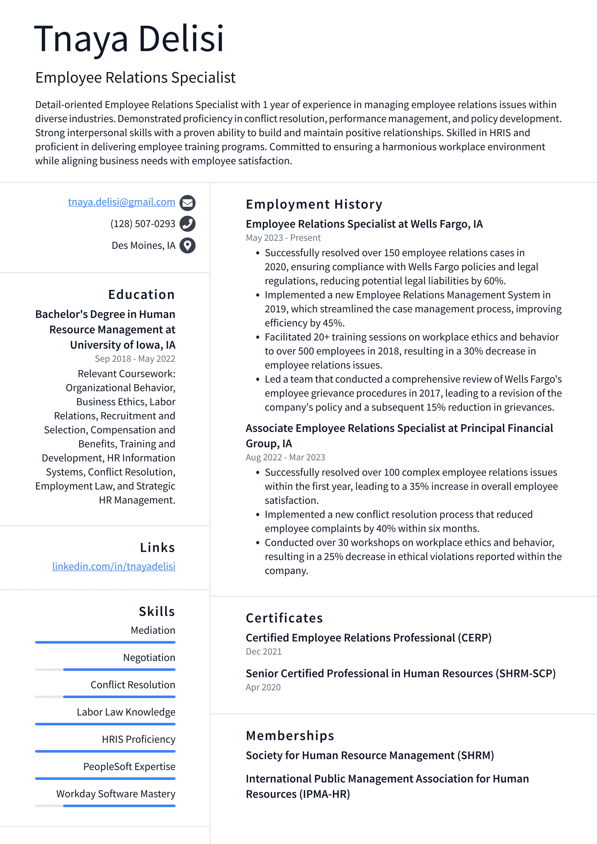 2023 Employee Relations Resume Example ( Guidance) TealHQ