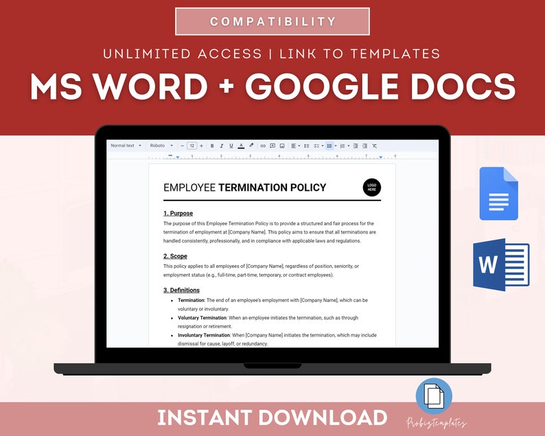 Employee termination policy in Word and Pdf formats