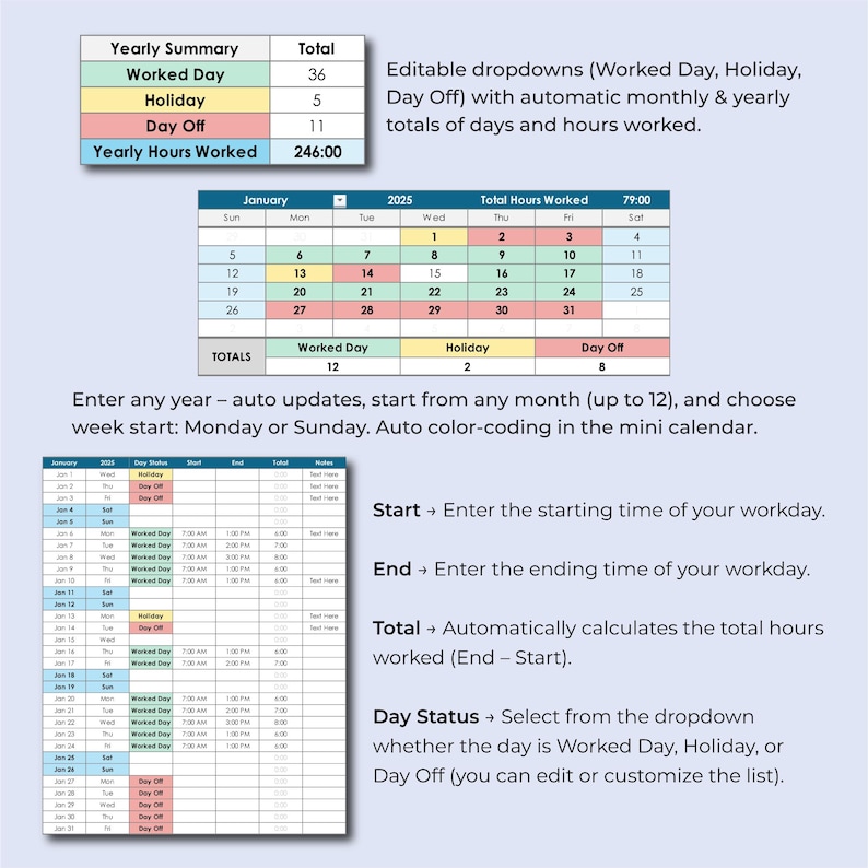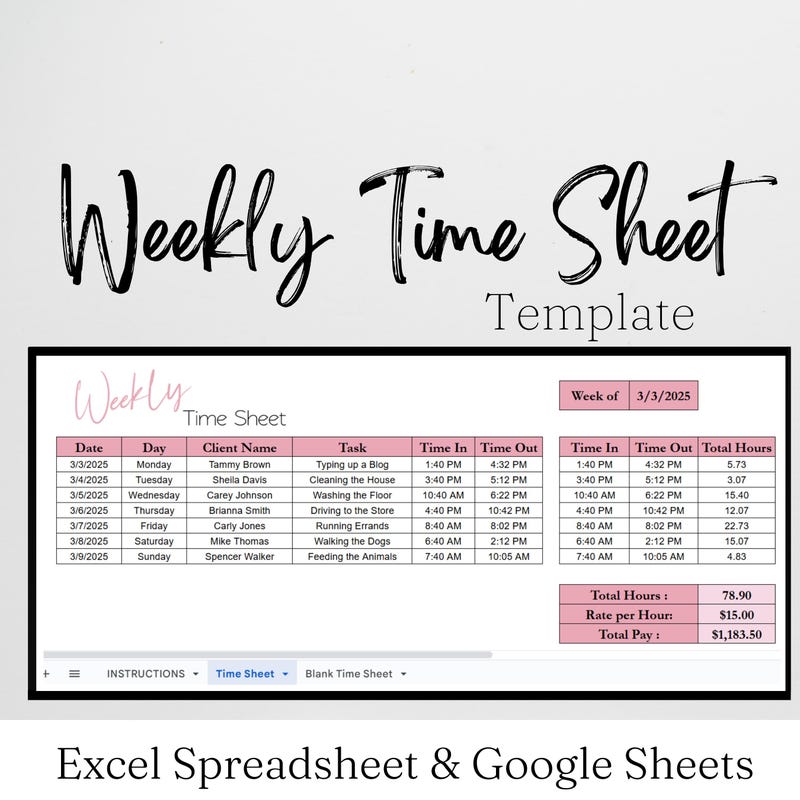 Work Hours Tracker Excel Google Sheets Timesheet Template