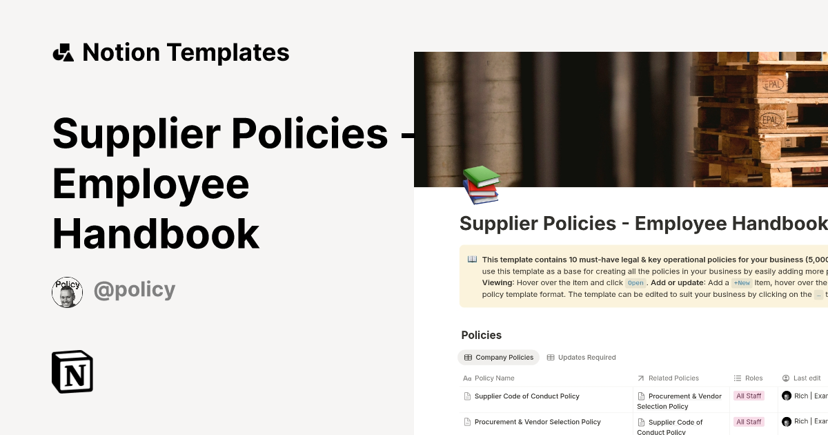 Supplier Policies Employee Handbook Template Notion Marketplace