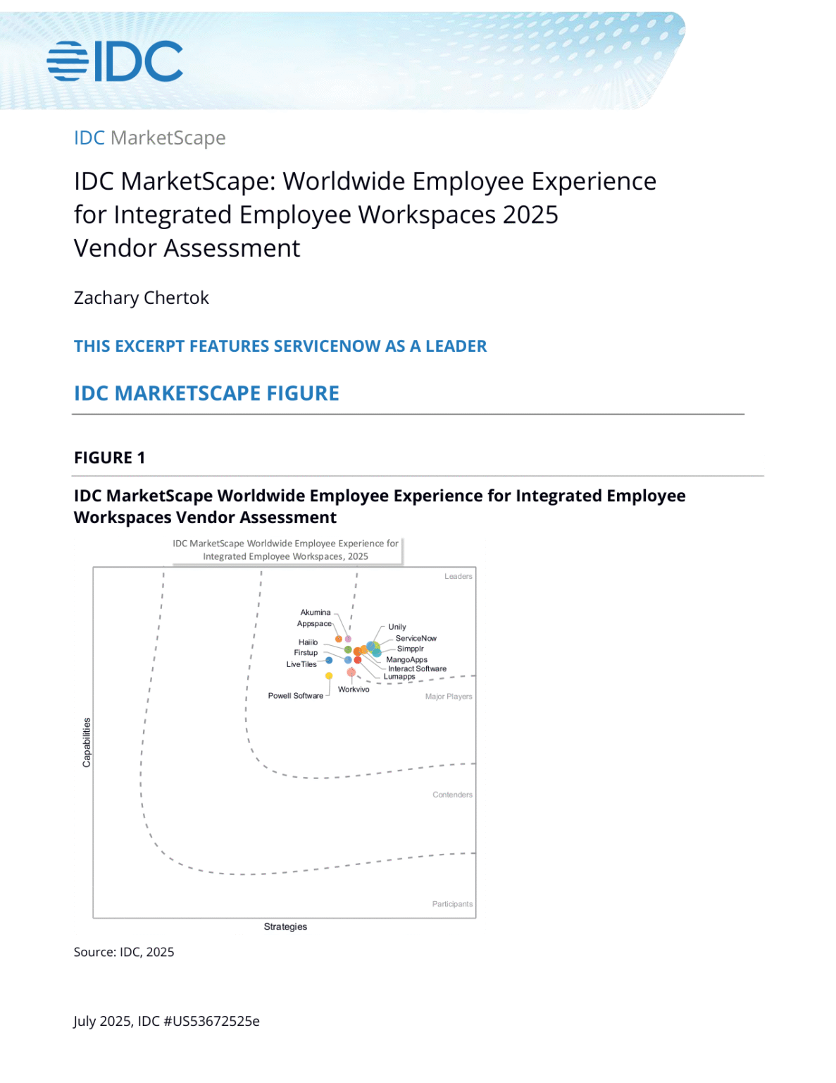 ServiceNow Named a Leader in Worldwide Employee Experience for