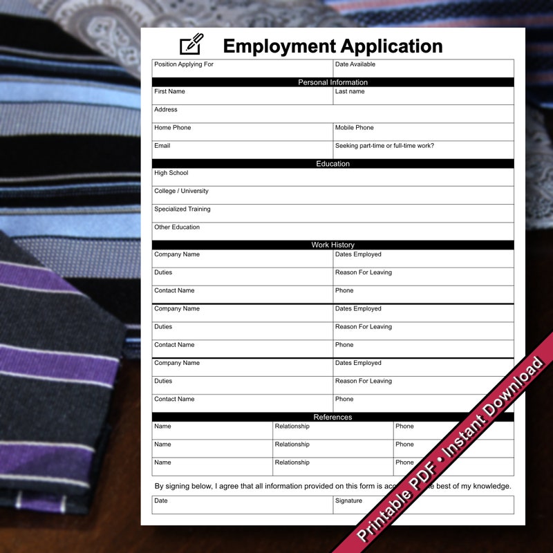 Here are some of the images for Employment Application Forms Free Printable that we found in our website database.