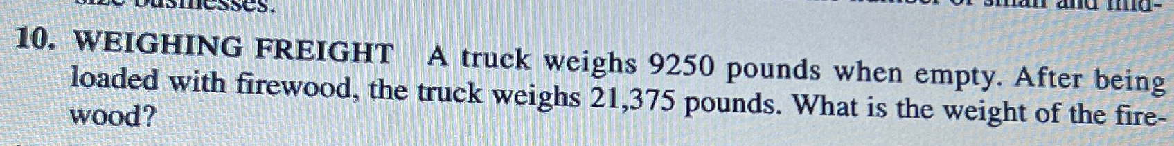 Solved WEIGHING FREIGHT A truck weighs 9250 pounds when Chegg com