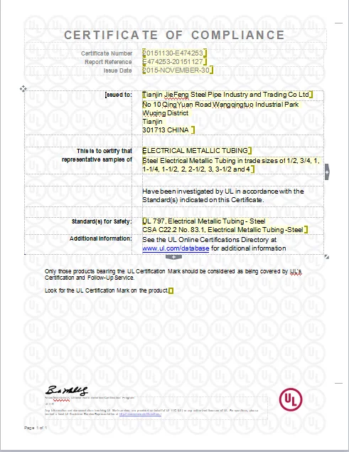 UL Certification 1/2 #39 #39 EMT GRC Conduit for Indoor Ceilings in Outdoor