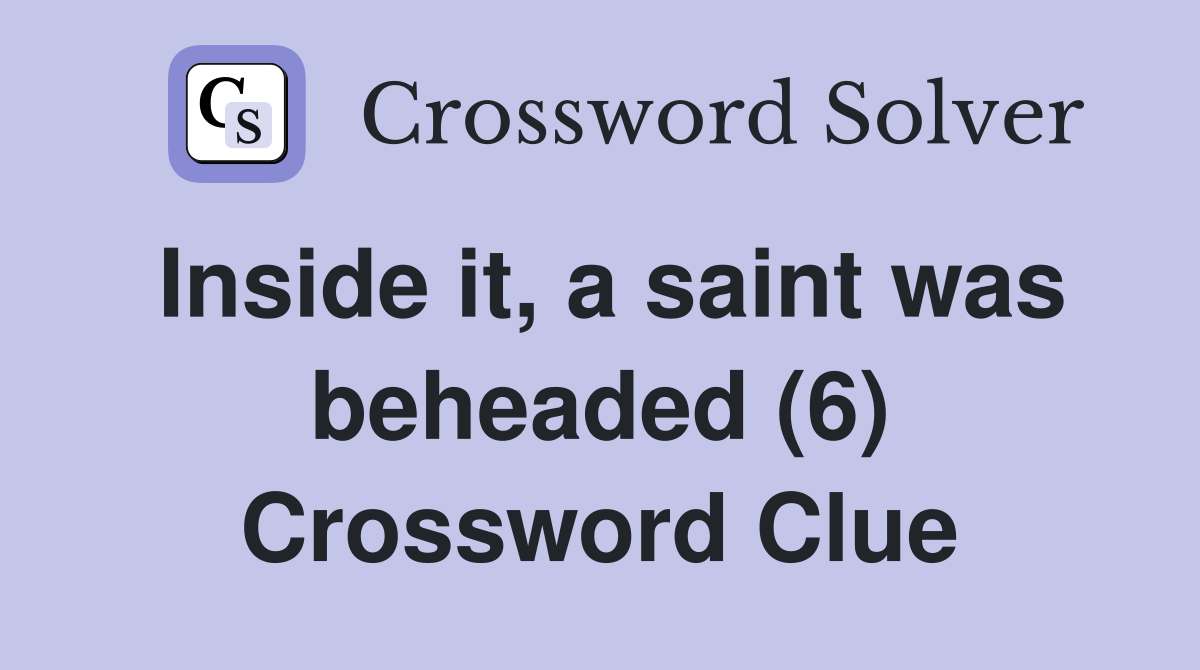 Inside it a saint was beheaded (6) Crossword Clue Answers