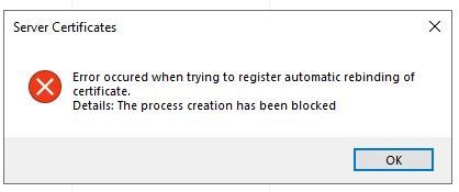 An error occured while enabling automatic rebinding of certificate in