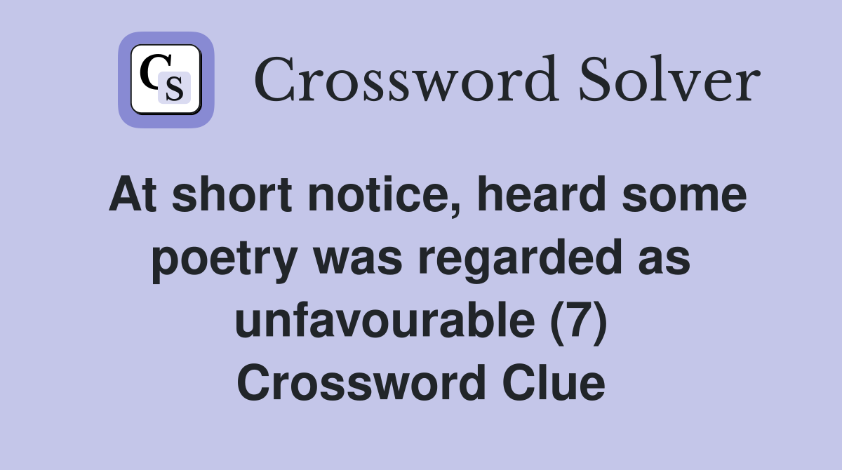 At short notice heard some poetry was regarded as unfavourable (7