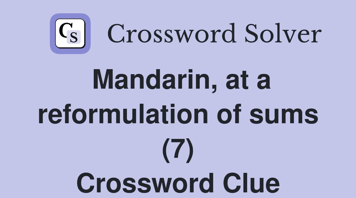 Mandarin at a reformulation of sums (7) Crossword Clue Answers