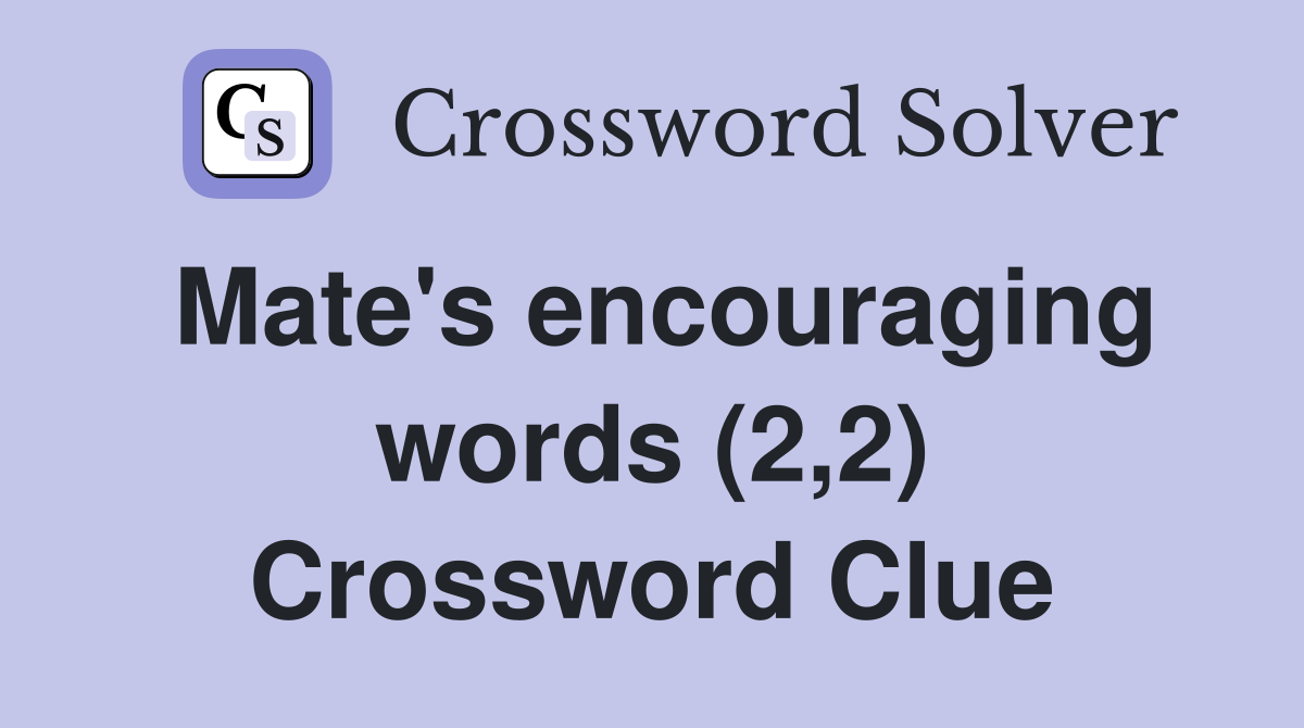 Mate #39 s encouraging words (2 2) Crossword Clue Answers Crossword Solver