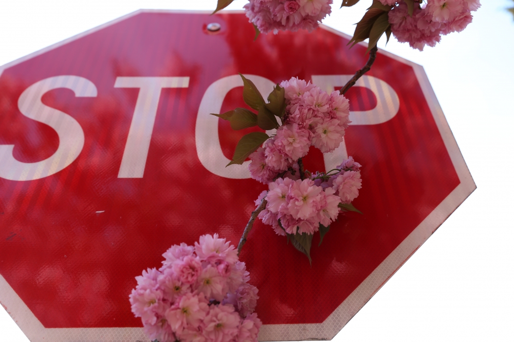 Stop sign with flowers hi res stock photography and images Alamy