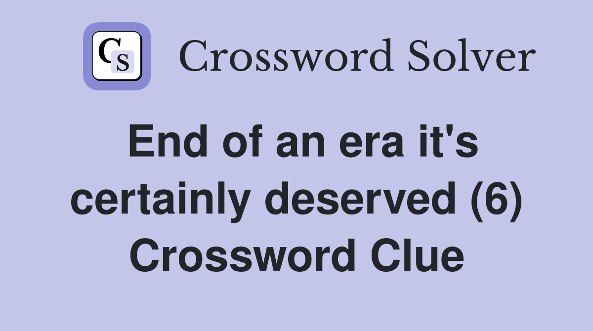 End of an era it s certainly deserved (6) Crossword Clue Answers