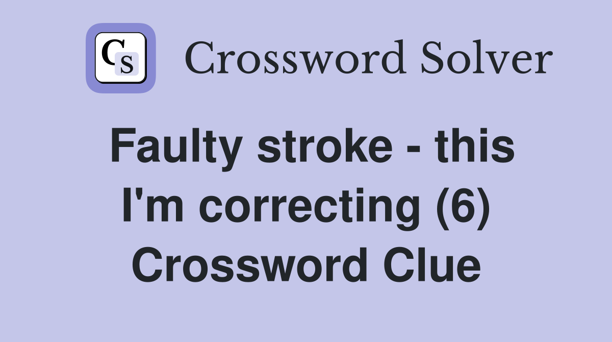 Faulty stroke this I m correcting (6) Crossword Clue Answers