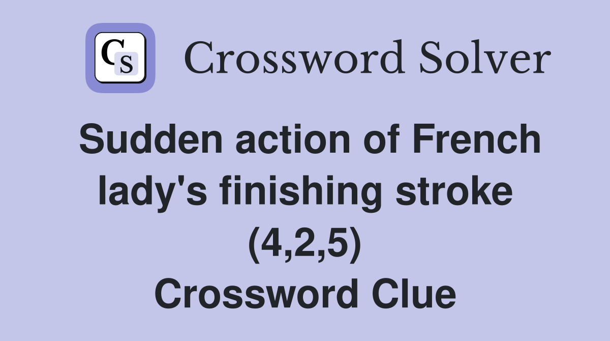 Sudden action of French lady s finishing stroke (4 2 5) Crossword