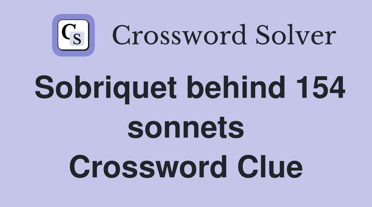 Sobriquet behind 154 sonnets Crossword Clue Answers Crossword Solver