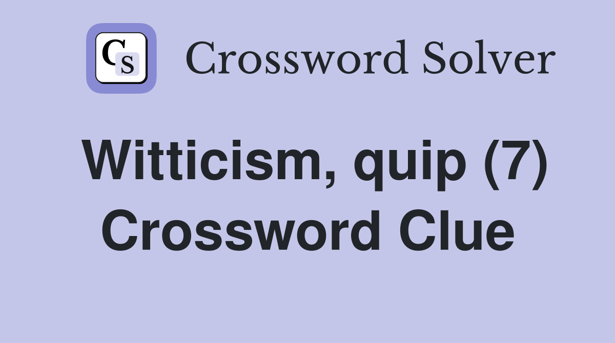 Witticism quip (7) Crossword Clue Answers Crossword Solver