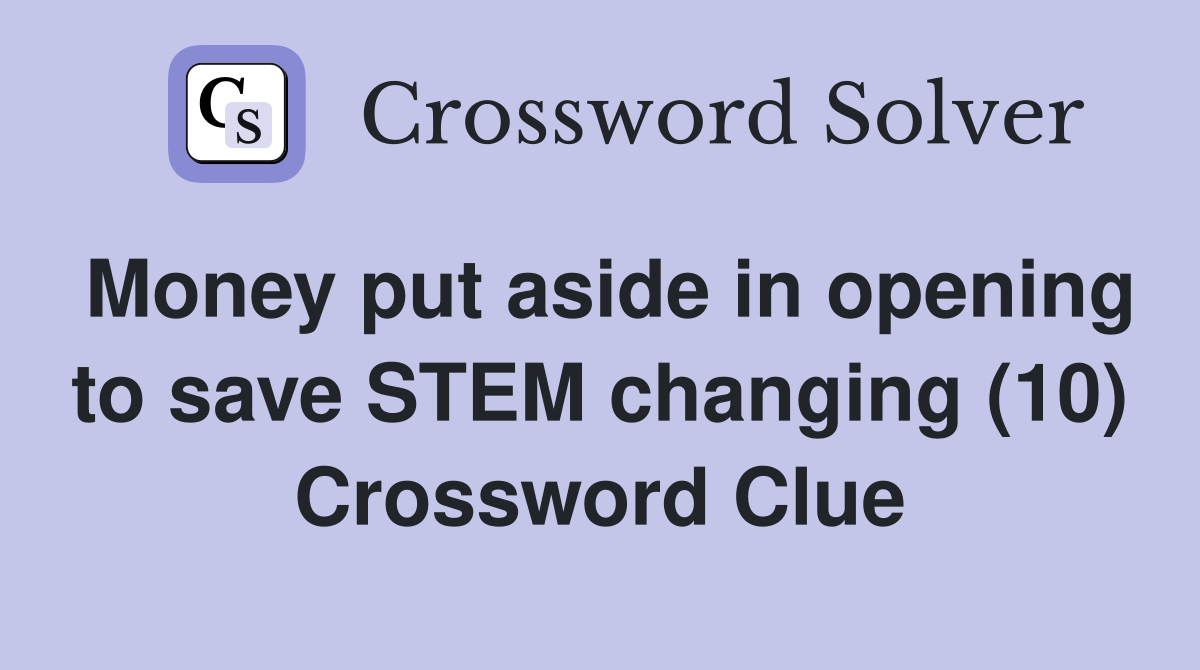 Money put aside in opening to save STEM changing (10) Crossword Clue