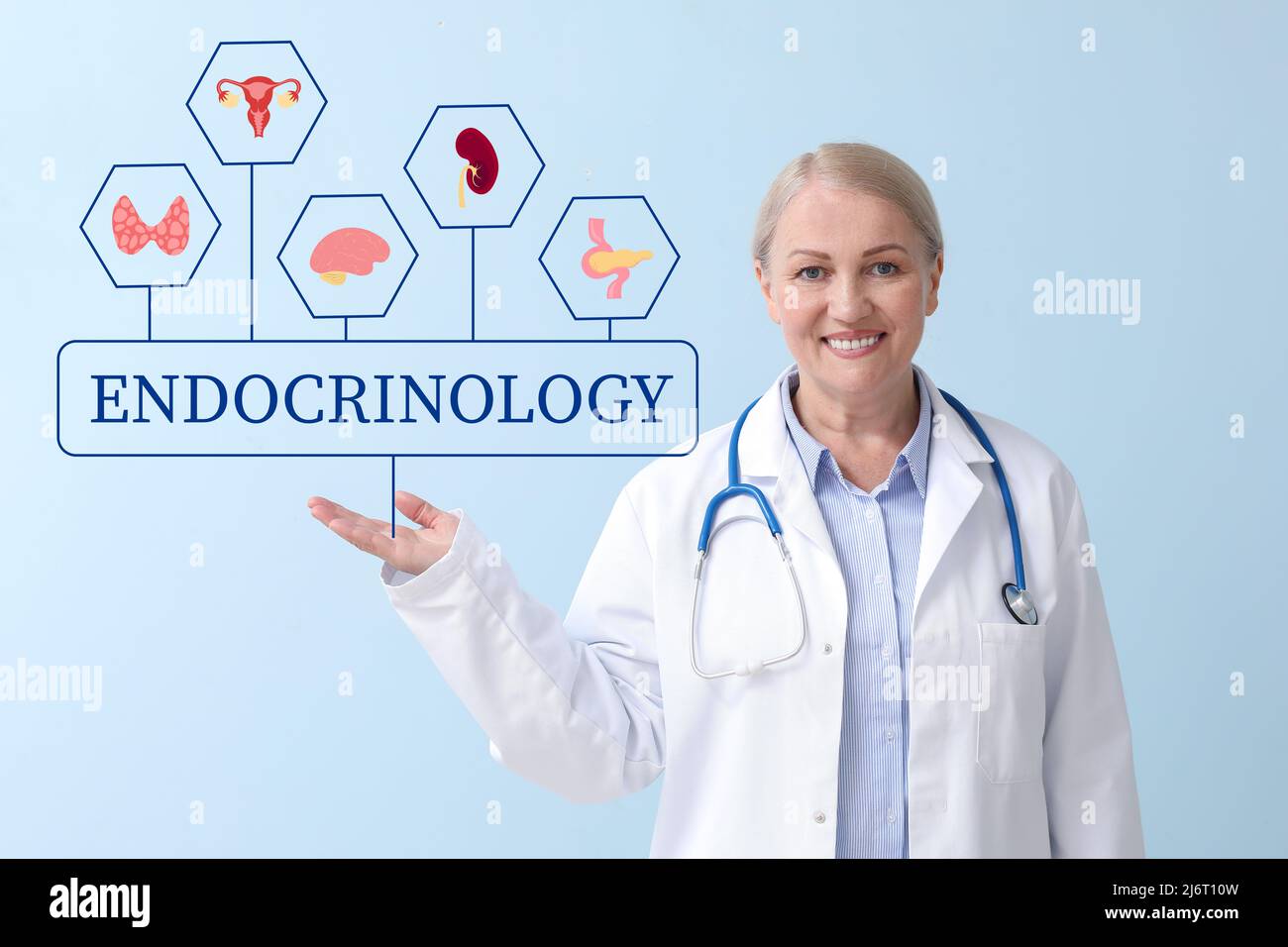 Mature female endocrinologist on light color background Stock Photo Alamy