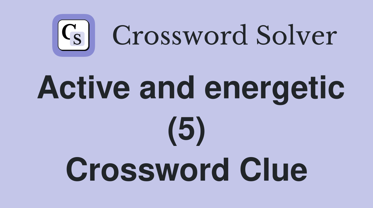 Active and energetic (5) Crossword Clue Answers Crossword Solver
