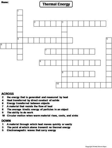 Thermal Energy Crossword Puzzle Teaching Resources
