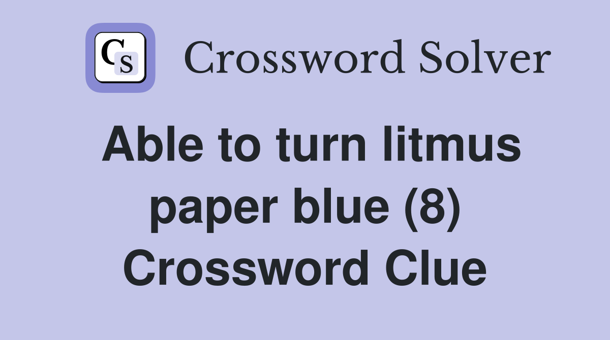 Able to turn litmus paper blue (8) Crossword Clue Answers Crossword