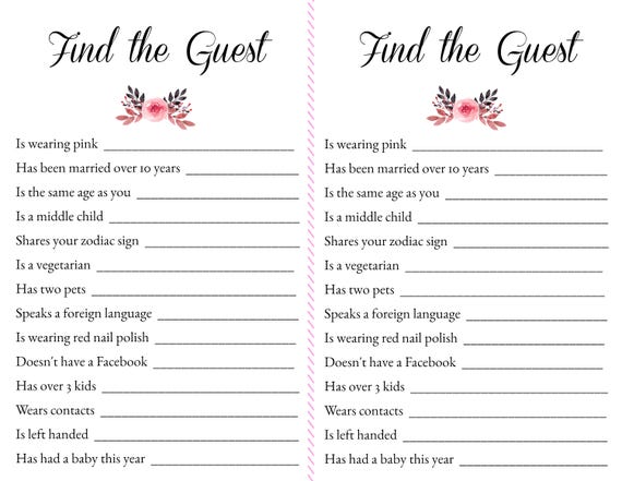 FREE PRINTABLE ENGAGEMENT PARTY OR WEDDING ICE BREAKER GAME FIND