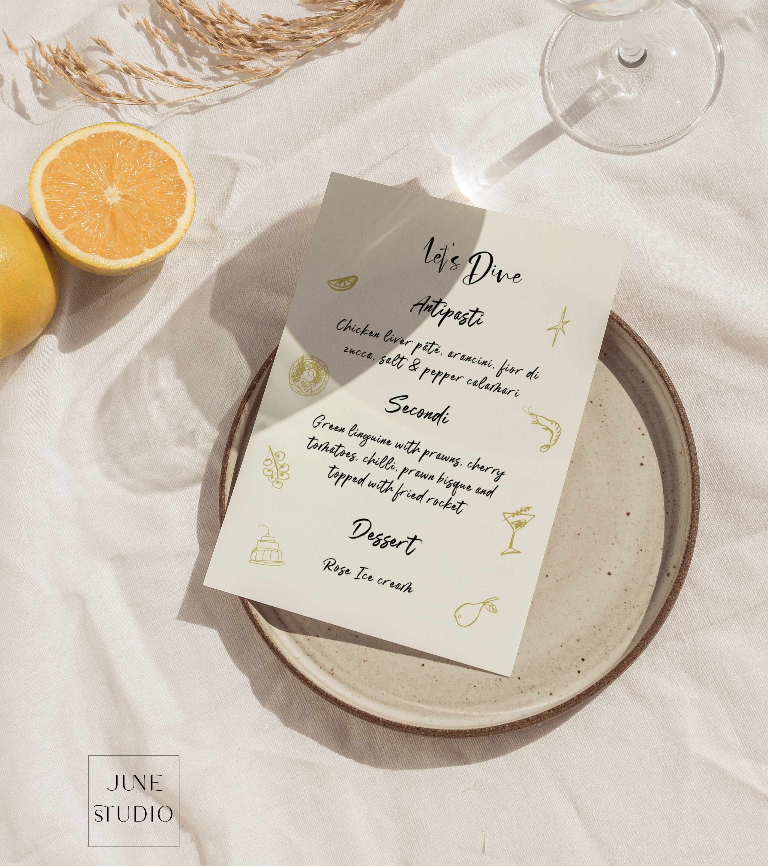 Wedding Menu Hand Drawn Template Funky Engagement Party Menu Card Cute